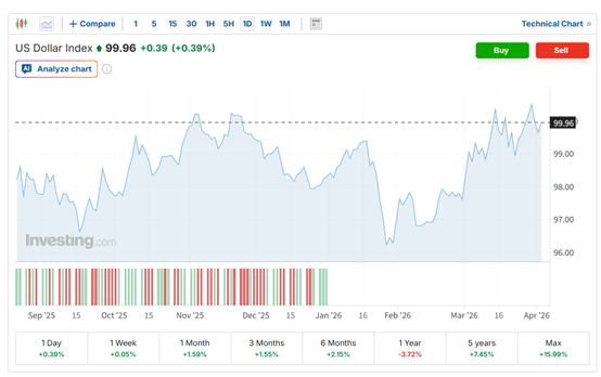 在动荡时期,美元一直是投资者的首选避险货币,在特朗普发表演讲后,美元兑大多数货币上涨。截止目前,美元指数上涨0.39%。