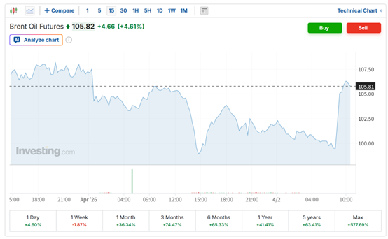 特朗普的这番言论打击了投资者对战争快速结束的乐观情绪。就在前一天(31日),特朗普还在白宫表示,美国将在“两到三周”内结束对伊朗的战事,可能在此之前与伊朗达成协议。
