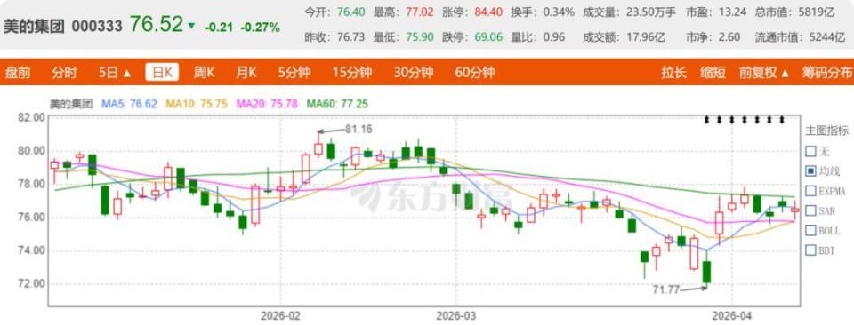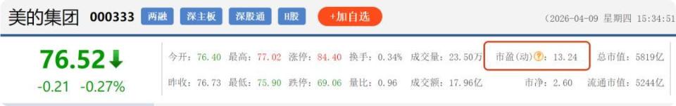 日赚1.2亿、分红73.6%,美的的市盈率只有13倍。