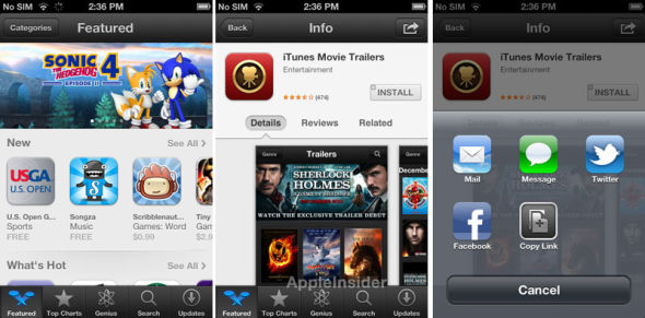 无论搜索方法是否会发生变化,苹果iOS应用商店都会在今年秋天iOS 6操作系统发布以后在视觉上发生很大转变。更新后的iOS应用商店将拥有更加暗色的主题和新的应用安装方式,用户无需返回主屏幕才能安装应用。