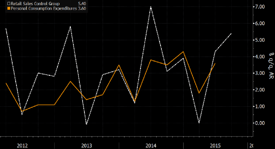 个人消费支出(PCE)以及美国经季节因素调整的剔除车商、建筑材料及加油站的零售销售