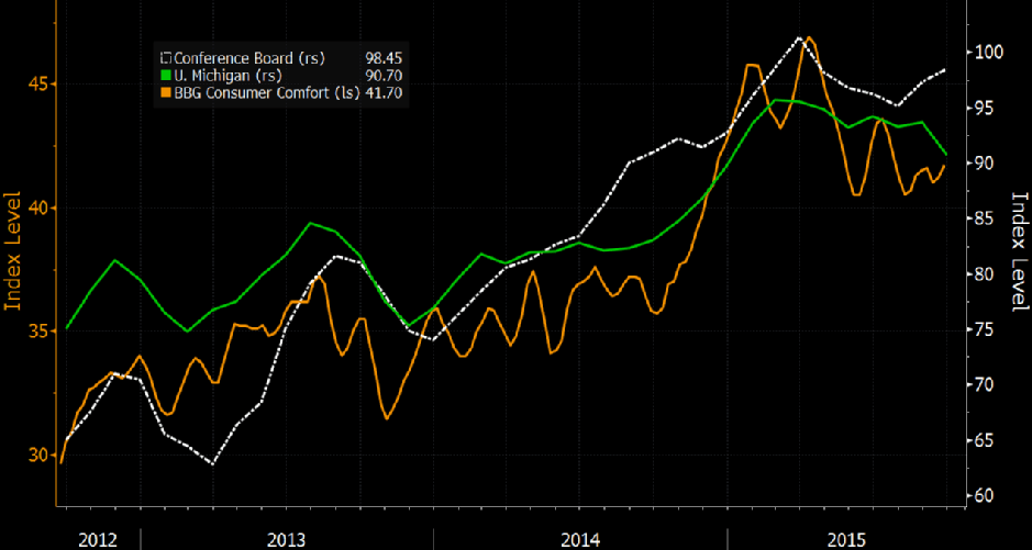 密歇根大学消费者信心指数10月份初值将成为对消费者活动最具前瞻性的指标之一。经济学家普遍预计该数据将基本持平,从9月份的87.2微升至89.0。