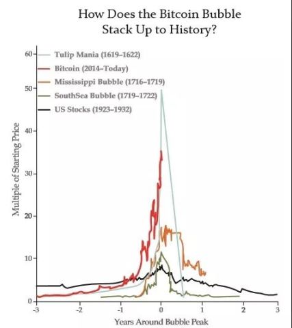 加密货币在2017年集体爆发。比特币从2017年年初900美元附近,最高升至去年12月中旬的19000多美元,一年涨幅高达20倍。市值接连超过奈飞、大摩、高盛、迪士尼、通用电气等知名上市公司的市值。荷兰有不少市场人士认为,此轮比特币疯狂程度可与1634-1637年间的郁金香泡沫比肩。