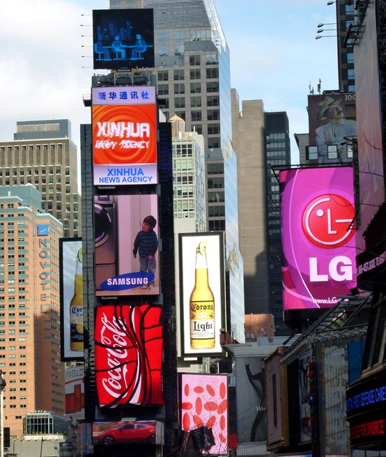 根据人民日报社旗下的国际金融报报道,目前至少有3家代理时报广场广告牌生意的中国公司:新华社的全资子公司新华影廊、大连户外媒体集团国域无疆,以及蓝色光标旗下子公司蓝色天幕。