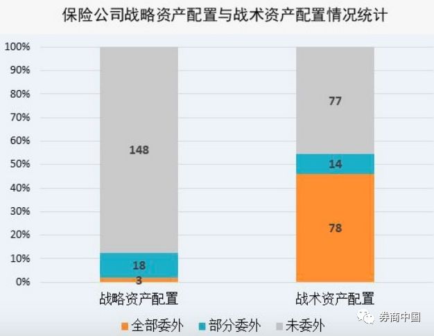 各家保险公司对战略资产配置职能、战术资产配置职能安排的差异较大,大多数保险公司倾向于自己做战略资产配置,而战术资产配置职能方面,自己做和委外的,约各占半数。