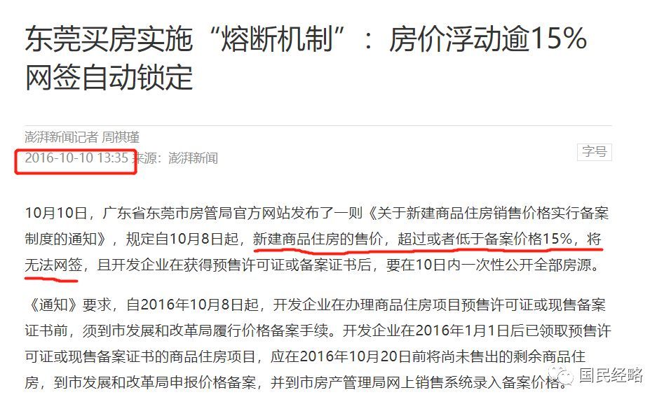 早在2016年10月,东莞就率先出台“房价熔断”机制