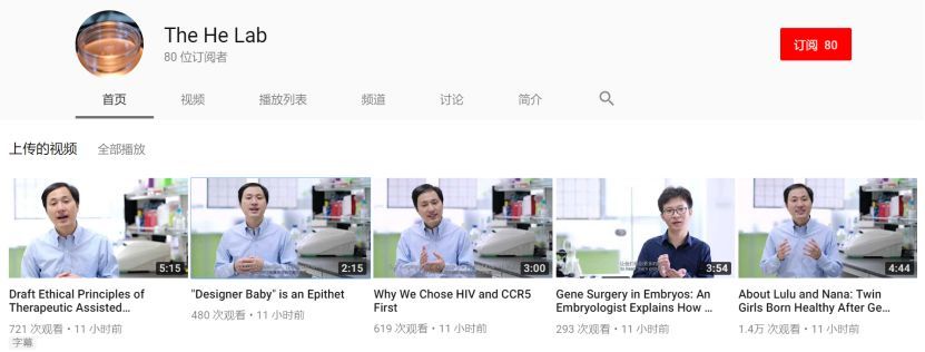 11月26日,满世界的媒体都在寻找贺建奎的踪迹。有意思的是,贺建奎虽然没有露面,但在北京时间当天中午12点左右,他的团队在YouTube、优酷等平台上传了一组视频,由贺建奎出面向观众述说了自己的心声。