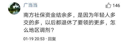 还有网友担忧今后钱不够:南方社保资金结余多,是因为年轻人多交的多,以后都退休了要领的更多,怎么地区调剂?