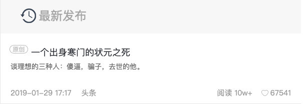 有意思的是,在29日《一个出身寒门的状元之死》的推送中,作者的位置标注的是“匿名”。而在这篇文章的最后,作者称自己写这篇文章花了半个月。