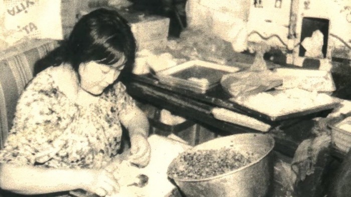 年轻时的臧健和。被丈夫抛弃,在推车上的卖水饺谋生