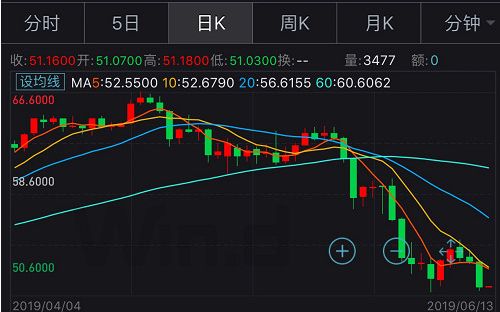 本周三NYMEX原油期货收跌4.11%报51.08美元/桶,连跌三日,创五个月以来新低,较5月最高点已经跌去超20%。。