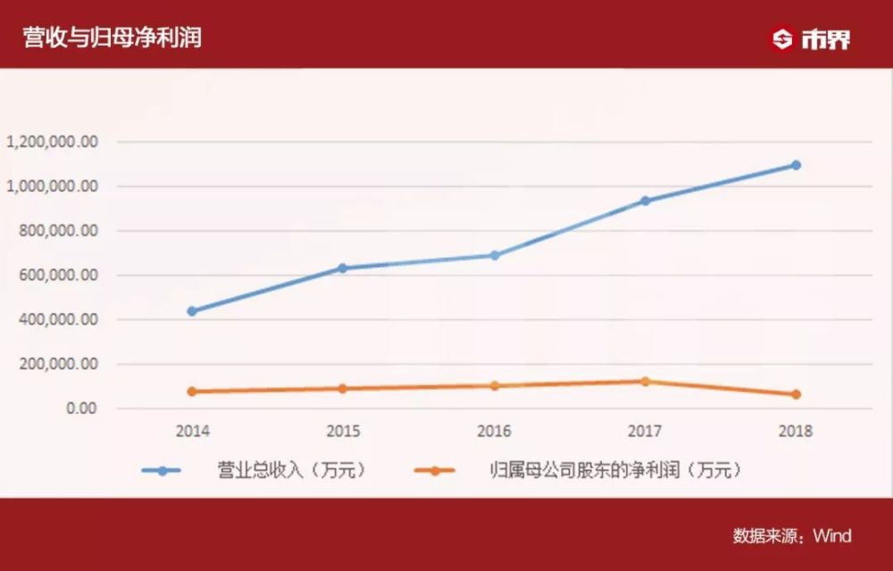 2018年,启迪桑德的归母净利润同比下降48.5%,仅为6.4亿元,这一数字比2014年时还要低。