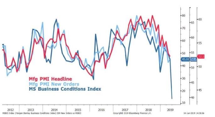 关于Q2财报季,摩根士丹利认为,市场低估了公司降低全年盈利指引。从今年4月之后的一季财报至今,全球市场发生了一些重要变化,比如中国和美国之间的贸易关系在一季度预期较高,但在5月出现意外转折;全球PMI数据继续恶化:摩根士丹利商业环境指数调查显示,股票分析师对其所研究公司的信心在6月遭遇了最大月度下滑。这些都是全球股市面临风险的信号。