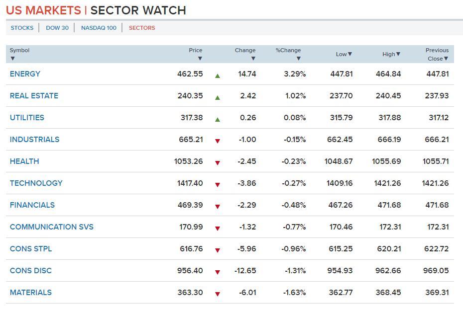 - 1美股周一收盘全线下跌,道指跌逾140点,终结八连涨走势,因投资者担忧油价飙升可能会令全球经济增长放缓。标普500指数11个板块中有8个板块下跌,3个板块上涨,其中材料和非必需消费品板块领跌,能源板块领涨。