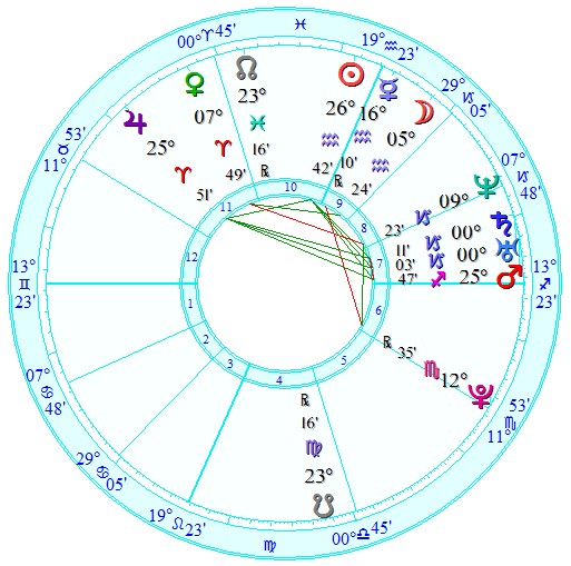 教授这样的花样美男迷倒一片女性,那常常有男性会对这样的美男嗤之以鼻,认为他不过是金玉其外败絮其中。非也非也,教授的水星在水瓶座,水星在此位置耀升,且他觉有超强的水瓶特质,因此他的智力水平是非常高的。这里说的智力是天生带来的能力和潜能,不是代表你的学历多高。水瓶座的符号象征着人类集体的智慧源泉,水星在水瓶又是智慧非常高的一个体现。他们常常非常好奇、思维如闪电般迅速,因此常常有很多灵感、创新、新奇的想法、站在潮流前沿的观点等等。我们注意到他还有水星和冥王星相刑,因此,他常常具有很多强迫性的思维,似乎要看清事实的真相,要挖掘深度埋藏的秘密。他的思维可以说是深刻的,具有洞见的,可以看到别人看不到的深层的东西。也可以说拥有“侦探”般的头脑,他们天生的雷达容易探测到别人看不到的秘密。水冥的相位,让我们看到一个沉默的、深沉的教授,他不会轻易让别人知道他的真实想法,也在无意间造成了神秘的气质。当然这也会有一种说话非常犀利的倾向,或者疑心比较重,容易因为语言造成伤害。我猜测教授也会喜欢阅读侦探小说或者玄幻、性和代表禁忌的小说内容。演绎侦探类或者无间道类型的影片能很好得抒发他与生俱来的水冥能量。