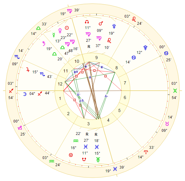 (因不知道准确生时,故排了中午12点的星图,不影响此处简单解读。注意:当日凌晨月亮跨座。)