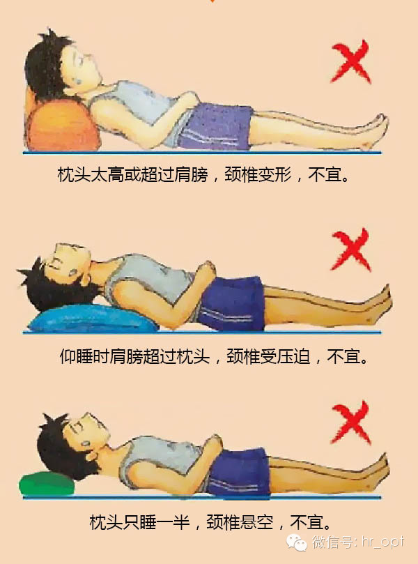 还有很多人习惯不垫枕头,睡觉时头会向后仰,颈椎承受的压力比向前仰时还高出一倍,长期下来,一定会出问题。至於枕头的高低,年轻人可稍低,年纪大后要稍高些,因為颈椎的柔软度会随年龄改变,愈老愈僵硬,就需要更多的支持。