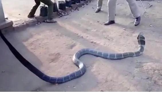 “我实在太渴了!”: 眼镜王蛇闯入印度村庄讨水喝