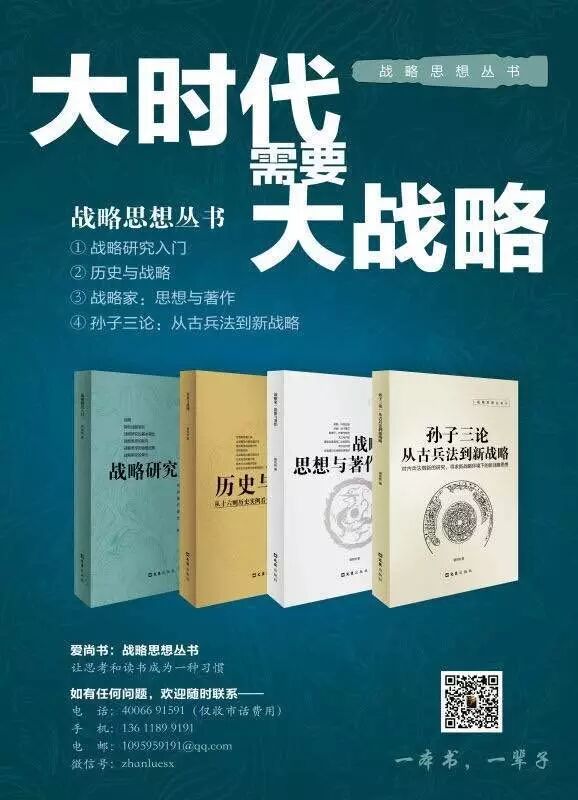 战略思想丛书(第1辑)《战略研究入门》《历史与战略》《战略家:思想与著作》《孙子三论——从古兵法到新战略》已经上架,可上当当网、亚马逊网等各大网店及部分实体店搜索了解、购买。