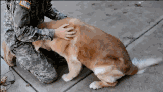 ▍ 13 小主人因为出去参加训练两个月后才回到家,已经13岁,本来走路都困难的狗狗,竟然激动的跑了出来迎接他。