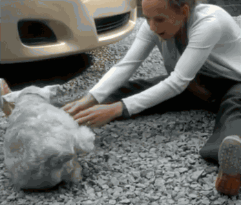 ▍ 11 听到“向后倒”的声音,狗狗直直往后倒去。