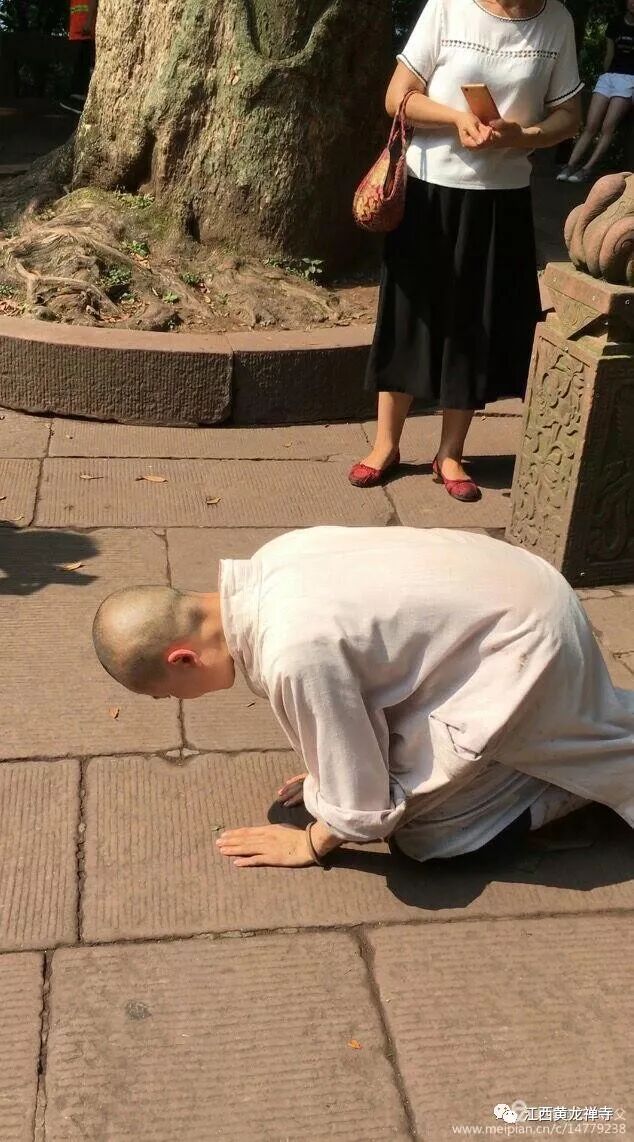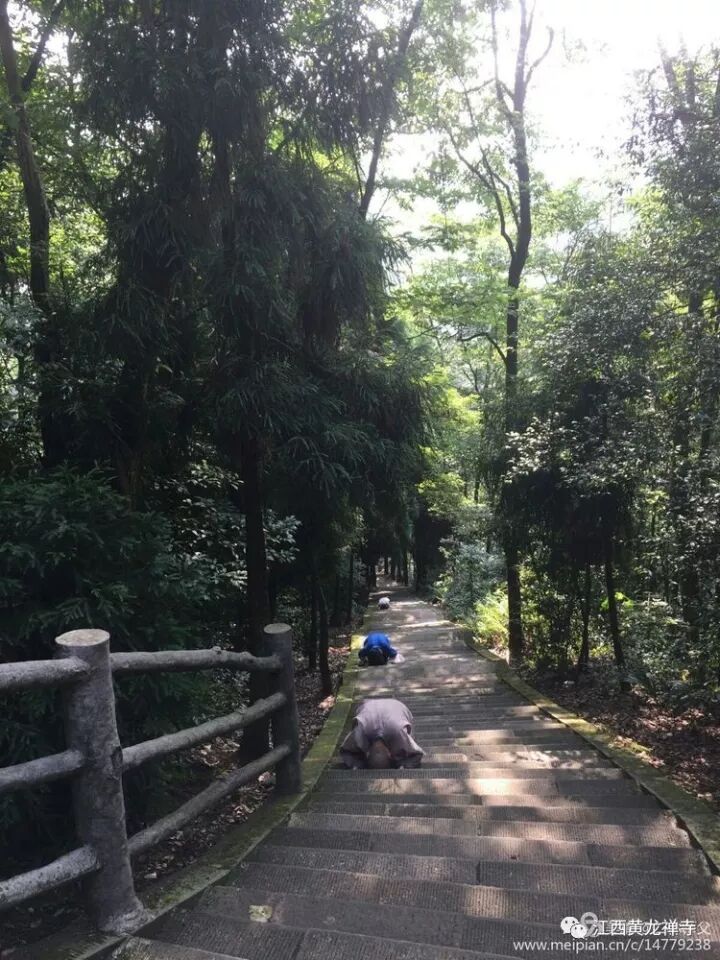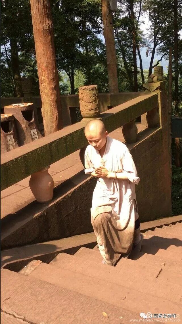 在北京剃度后不久,就去了普贤菩萨的道场峨眉山,一边参学,一边苦修。由于历史原因,台湾的佛教氛围相对要好一些。17年,她准备去台湾深造。在出发之前,她做了一个决定:为忏业障,为报父母恩,三步一拜朝礼峨眉山。