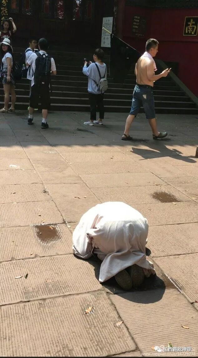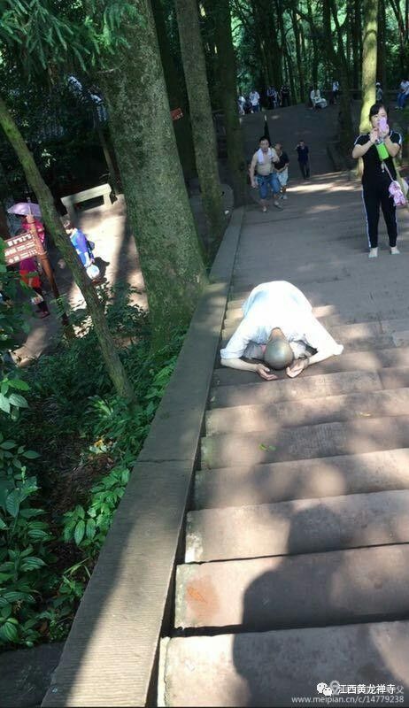 在路人诧异的眼光中,她终于拜到了峨眉山金顶。她回向说: