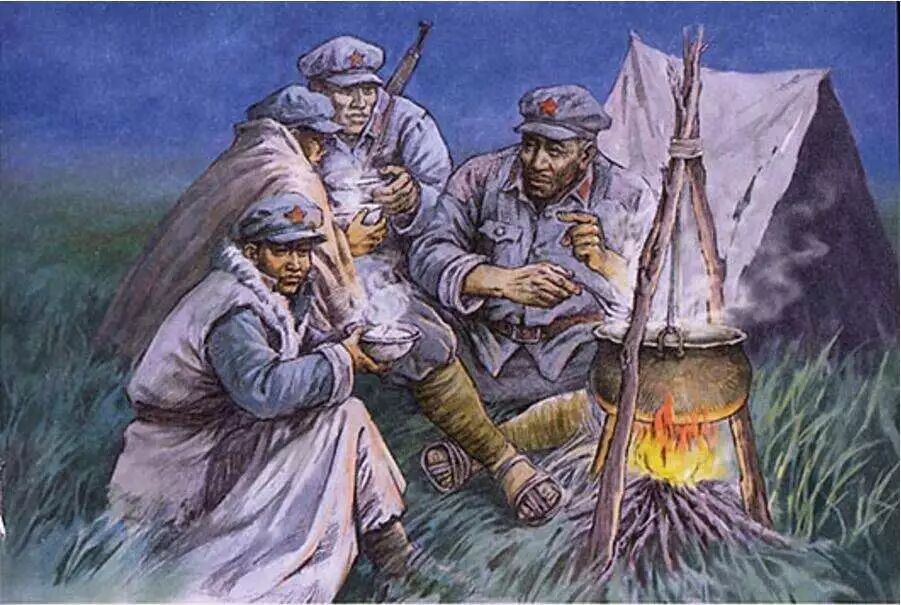 《金色的鱼钩》读起来很凝重,老班长为了革命事业,情愿挨饿也不吃鱼,嚼着草根和鱼骨头,整个人瘦得皮包骨,奄奄一息。