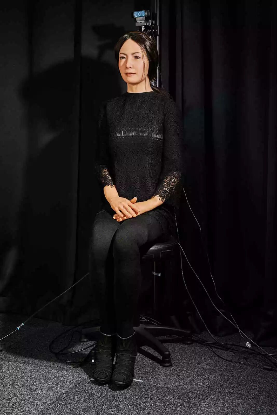 日本机器人学者石黑浩(Hiroshi Ishiguro)制造的人形机器人Geminoid F。该机器人原型是一个日俄混血美女模特,F代表女性female,她“出生”于2010年,会做出眨眼、微笑、皱眉等65种不同面部表情。图源:Cait Oppermann
