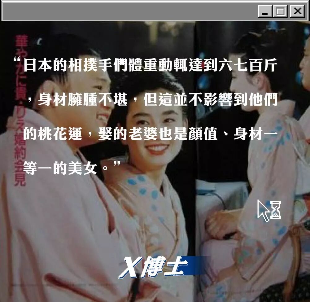 因此,相扑运动员在日本人的印象里除了社会地位高,还被普遍认为是真正的有钱人。这样一个社会地位高,而且还有钱的人,女人想嫁也就不足为奇了,这便形成了日本特有的“美女与野兽”的奇特搭配。