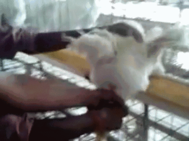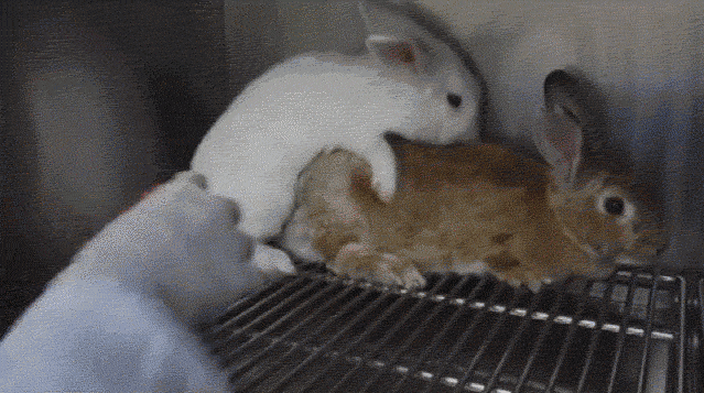 但不是所有动物都能接受这么抽象的女朋友,比如兔子。于是人类又想到了新的方法。他们使用母兔诱导公兔交配,公兔亮剑准备战斗的时候,饲养员抢先一步把公兔丁丁塞到假阴道里。
