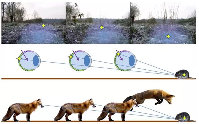德国和捷克科学家在研究红狐捕猎行为时发现,红狐的地磁感应可以辅助其成功捕到猎物(身体倾向于大致朝向东北方向来捕猎)。图源:phys.org