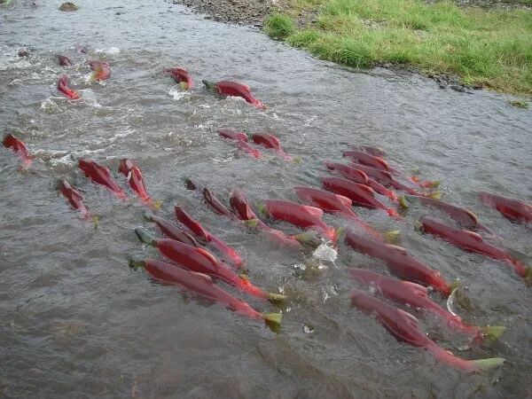 不列颠哥伦比亚省弗雷泽河的红鲑鱼同样会依靠磁感应来决定它们的洄游。图源:Current Biology