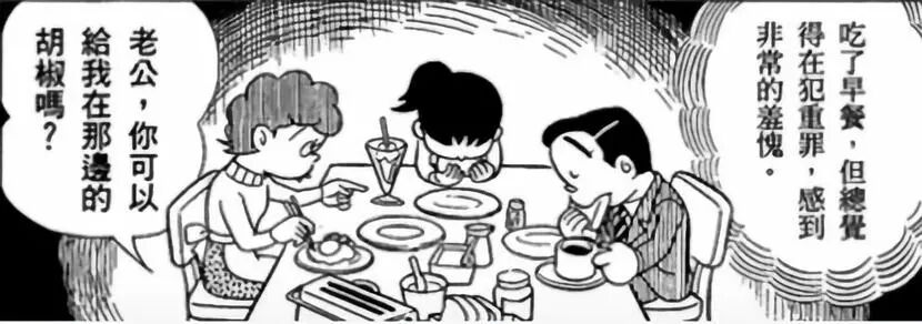 妻子小声害羞地说:“亲爱的,把那个调味料拿给我吧…”四岁的小女儿也默默低着头啃着面包一言不发。