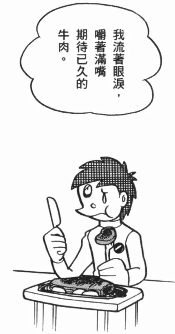 故事的结尾少女依旧被吃了,失落的宇航员回到地球,悲伤的吞食着一块牛排。