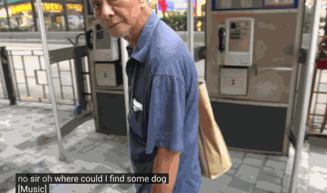 视频里有一个老人对待Ricegum的态度可圈可点,在被反复问道“哪里能吃狗肉”之后,他没有躲闪发问者的眼睛,也没有为此停下脚步,而是狠狠地盯着他然后离开,一副“你不好好跟我说话,我懒得理你”的态度。