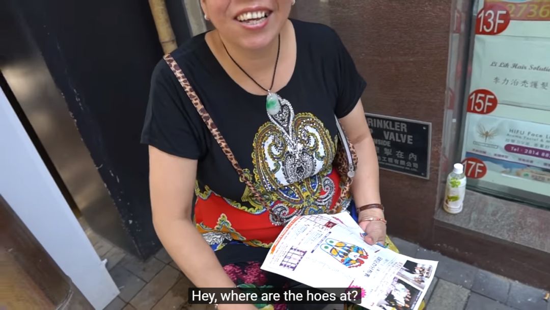 饱暖思淫欲,饥寒起盗心。吃饱喝足的Ricegum逮着街上的行人就问:“Where’s the hoe’s at?”,发现路人听不懂,换了一种更直白的方式:“Where’s the bitches at?”