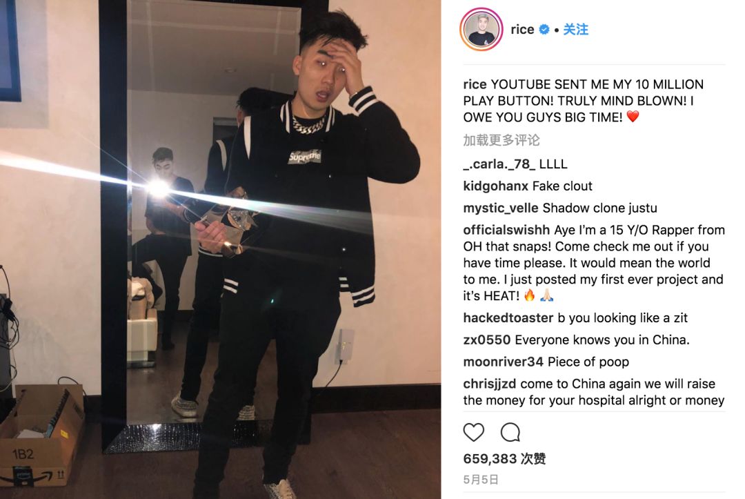 所以Ricegum作为一个拥有1000多万粉丝的亚裔网红,像黑人嘻哈歌手一样swag和多金,这无异于激发了很多亚裔的自豪感,不由自主的给Ricegum点赞打钱。