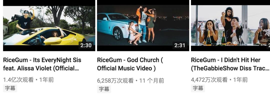翻看Ricegum的Youtube首页,基本只能看见三种东西:钞票、跑车和美女。