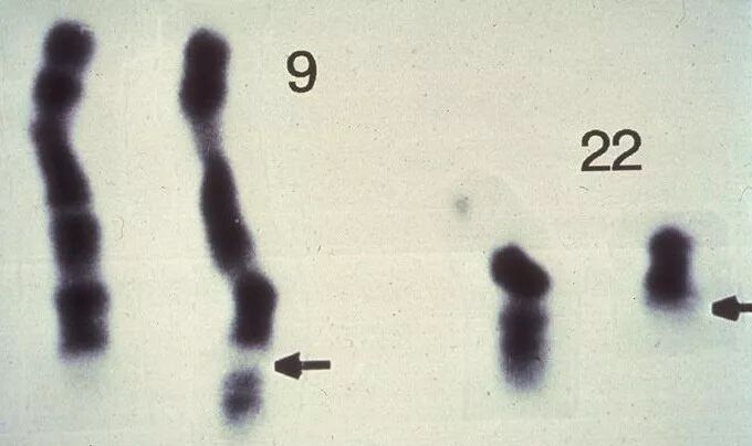人类历史的进程,总会在不经意下得到推动。彼得的好奇心很快带来了收获。没过多久,他与研究生一起发现了一个有趣的现象:在慢性骨髓性白血病(CML)患者的癌细胞中,第22号染色体明显要更短。