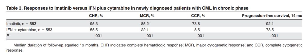 ▲3期临床中,格列卫的效果完胜标准疗法(图片来源:《Blood》)