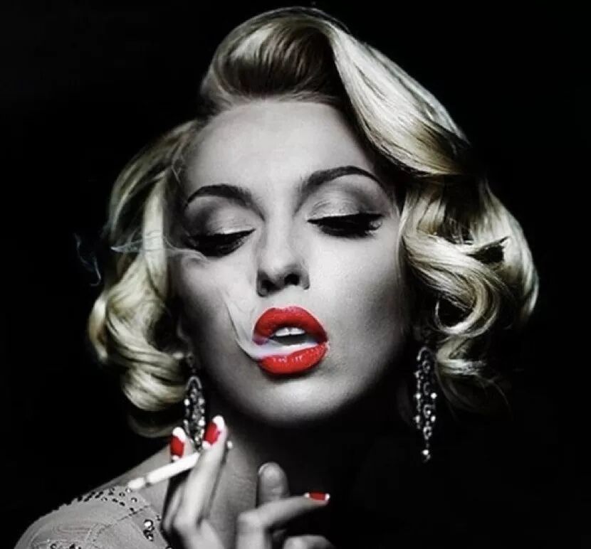 说个题外话,麦当娜有很多吸烟的照片,这里面含有她的性哲学与女权意识。在嘴与烟的结合中,麦当娜展现出一种对于男性“细小”的鄙视……