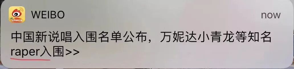 前几天微博推送了一条消息,因综艺节目认识的年轻Rapper们,转瞬间变了一个身份:Raper——