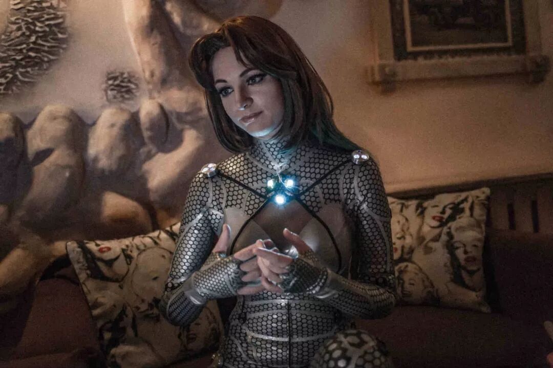 奥尔加·莱维斯卡亚(Olga Levitskaya)是一位24岁的超人主义者和神经生物学家。她穿着由她开发的网络装束,该装束被用来帮助患者进行伤后康复。一套服装的成本为200万卢布,约合315000美元。她希望到2020年能有更广泛的受众用到这套网络装束。