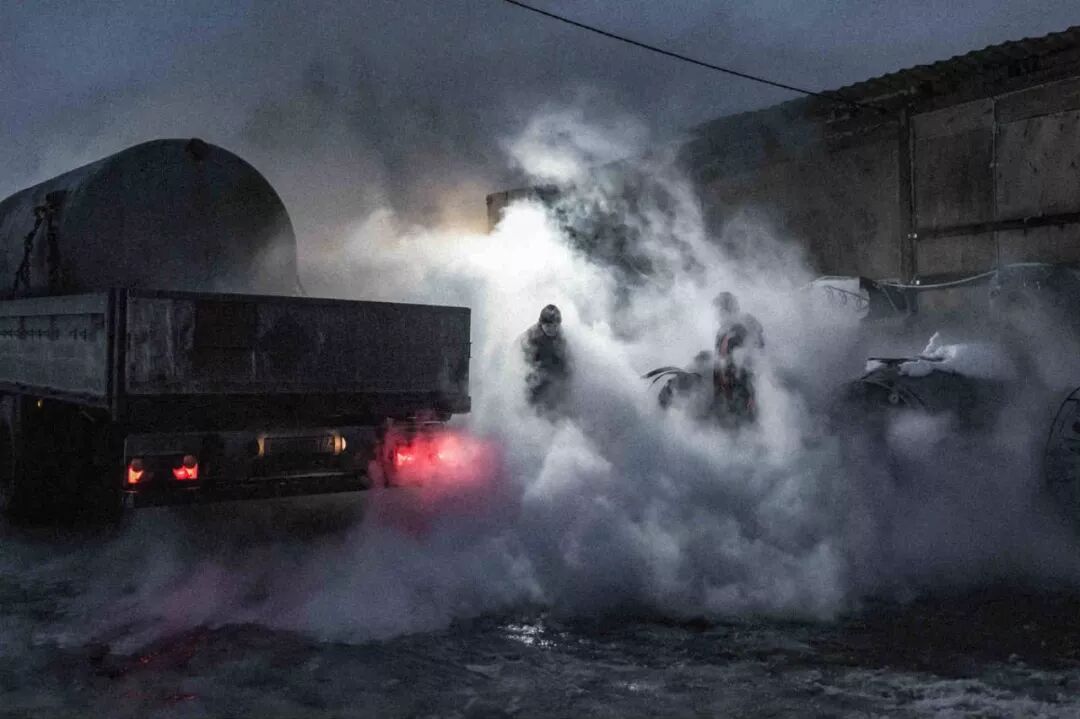 工作人员在莫斯科郊区的液氮和干冰厂外装载干冰,这家工厂为KrioRus供应液氮和干冰。液氮的成本约为每升10卢布,而干冰的成本约为每公斤80卢布。