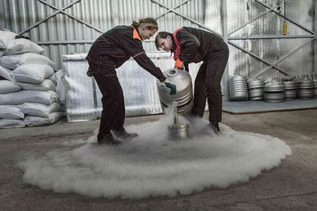 一位KrioRus的技术人员在进入冷却室前戴上面罩,以防吸入二氧化碳烟雾。冷却室中的尸体被干冰覆盖,直至温度降至负78摄氏度,然后浸入液氮中。