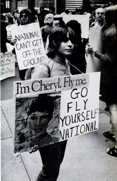 随着全国妇女运动变得活跃,国家航空公司的“Fly Me”系列广告也成了女性组织抗议的靶子。