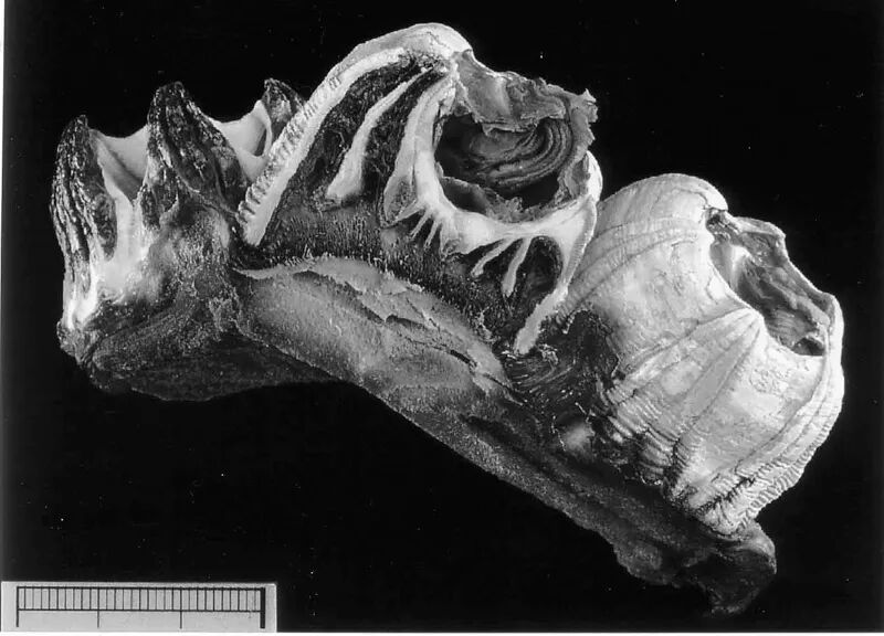 嵌在座头鲸身上的小冠藤壶。图源:耶鲁大学地质与地球物理系阿道夫·塞拉彻