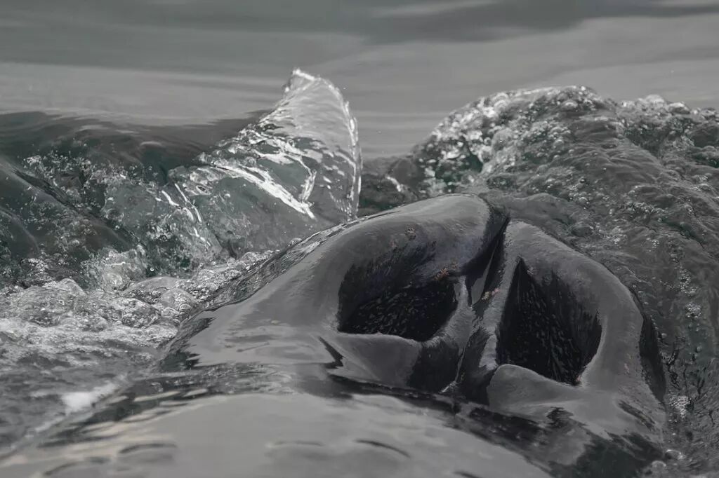 在这头灰鲸的气孔周围,可以看到少量的鲸虱。图源:Mike Rae