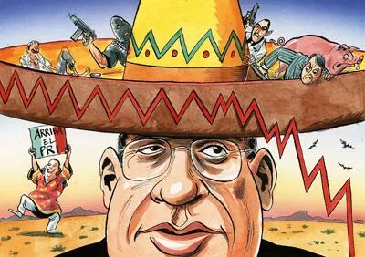 △《经济学人》杂志漫画,当时卡尔德隆已被国内暴力等因素拖累已久